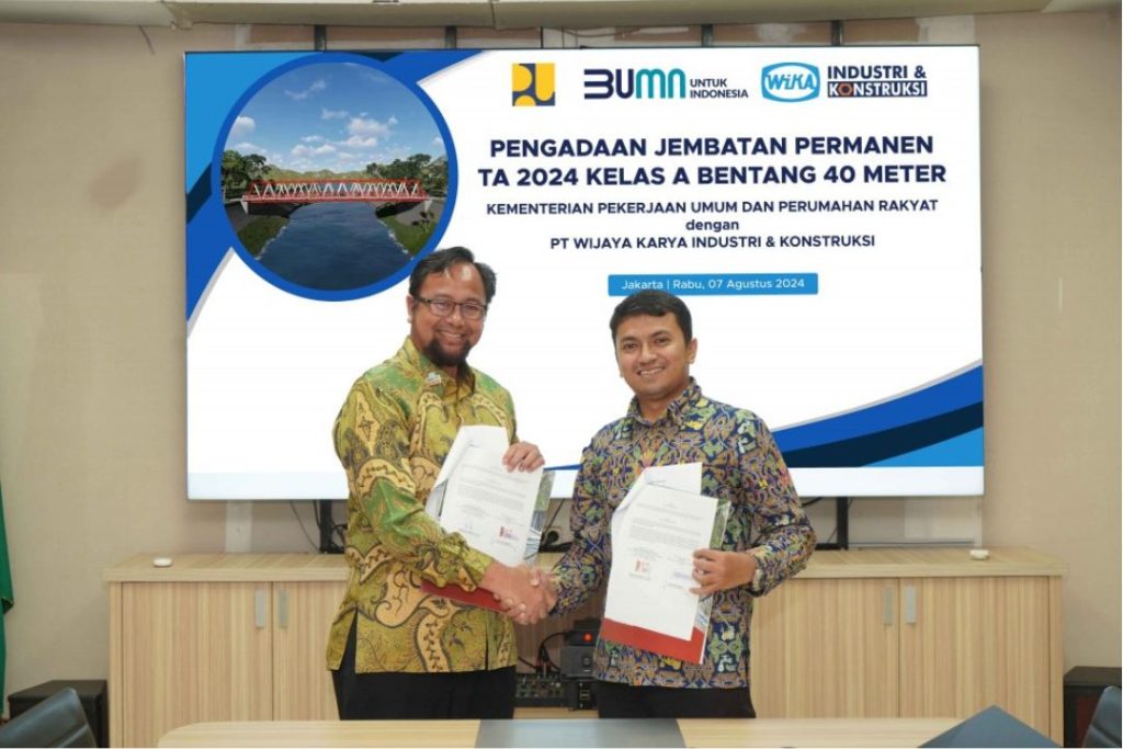 WIKAIKON memperoleh Kontrak Baru Pengadaan Jembatan Rangka Baja Permanen TA 2024 Kelas A Bentang 40 Meter dari Kementerian PUPR Jakarta – PT Wijaya Karya Industri & Konstruksi (WIKAIKON) kembali mendapatkan kepercayaan dari Kementerian Pekerjaan Umum dan Perumahan Rakyat (PUPR) dalam proyek Pengadaan Jembatan Rangka Baja Permanen Tahun Anggaran 2024 Kelas A dengan bentang 40 meter. Kontrak baru ini merupakan bagian dari kerjasama dengan Direktorat Pembangunan Jembatan, Bina Marga, Kementerian PUPR. (07/08) Penandatanganan kontrak dilakukan di kantor Kementerian PUPR oleh Direktur Teknik & Operasi WIKAIKON, Bapak Adi Widyo Nugroho, dan perwakilan Satuan Kerja Direktorat Pembangunan Jembatan, Pejabat Pembuat Komitmen ESP, Bahan dan Peralatan Jembatan, Kementerian PUPR. Kontrak ini menggunakan E-Katalog sebagai instrumen utama dalam pengadaan barang sehingga mempercepat proses pengadaan dan meningkatkan efisiensi. “Dengan menggunakan E-Katalog, kami memastikan bahwa setiap tahap pengadaan berjalan secara transparan dan efisien, memungkinkan proyek diselesaikan tepat waktu dan sesuai anggaran,” ungkap Bapak Adi Widyo Nugroho. Produk WIKAIKON Jembatan rangka baja permanen kelas A dengan bentang 40 meter ini diharapkan dapat meningkatkan konektivitas dan aksesibilitas di berbagai wilayah. Masyarakat dapat menantikan kehadiran produk jembatan dari WIKAIKON di kota-kota mereka dalam waktu dekat. WIKAIKON obtains New Contract for Procurement of Permanent Steel Frame Bridge FY 2024 Class A 40 Meter Span from the Ministry of PUPR Jakarta – PT Wijaya Karya Industri & Konstruksi (WIKAIKON) has again won the trust of the Ministry of Public Works and Public Housing (PUPR) in the 2024 Budget Year Permanent Steel Frame Bridge Procurement project Class A with a span of 40 meters. This new contract is part of the collaboration with the Directorate of Bridge Construction, Bina Marga, Ministry of PUPR. (07/08) The signing of the contract was carried out at the PUPR Ministry office by the Director of Engineering & Operations of WIKA IKON, Mr. Adi Widyo Nugroho, and representatives of the Directorate of Bridge Construction Work Unit, Commitment Making Officer for ESP, Bridge Materials and Equipment, Ministry of PUPR. This contract uses E-Catalog as the main instrument in the procurement of goods so as to speed up the procurement process and increase efficiency. “By using E-Catalog, we ensure that every stage of procurement runs transparently and efficiently, allowing the project to be completed on time and within budget,” said Mr. Adi Widyo Nugroho. WIKAIKON products The class A permanent steel frame bridge with a span of 40 meters is expected to improve connectivity and accessibility in various regions. People can look forward to the presence of bridge products from WIKAIKON in their cities in the near future. PT WIJAYA KARYA INDUSTRI & KONSTRUKSI Instagram : wikaindustrikonstruksi Tiktok: wikaindustrikonstruksi Youtube : WIKA Industri & Konstruksi Facebook : PT Wijaya Karya Industri & Konstruksi Linkedin : PT Wijaya Karya Industri & Konstruksi Contact Us: ——————– Corporate Secretary WIKA IKON  info@wikaikon.co.id